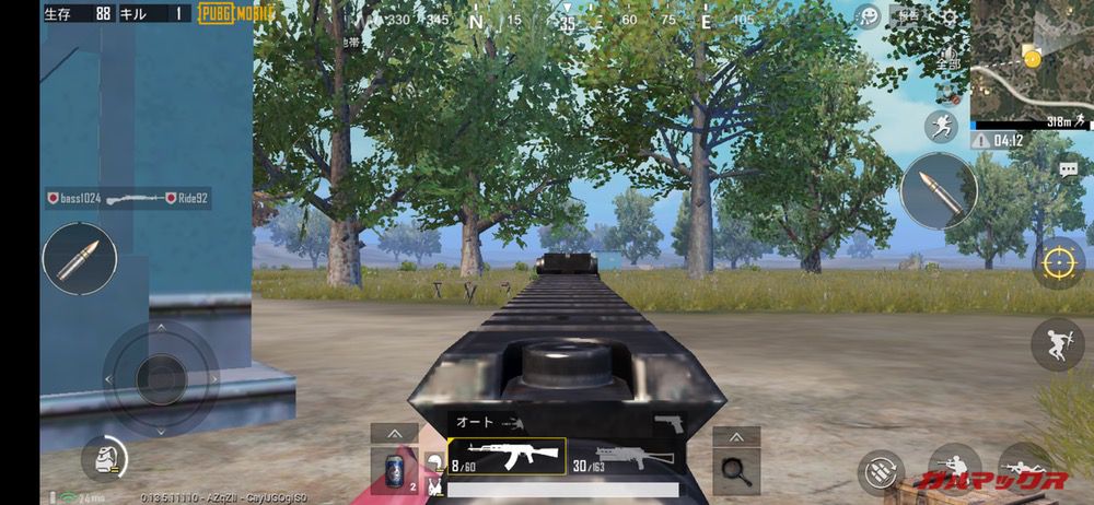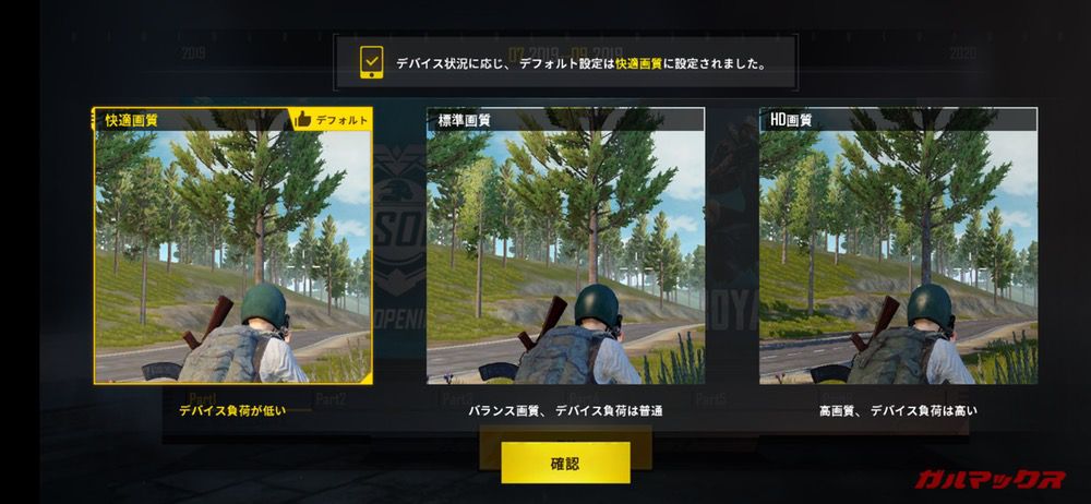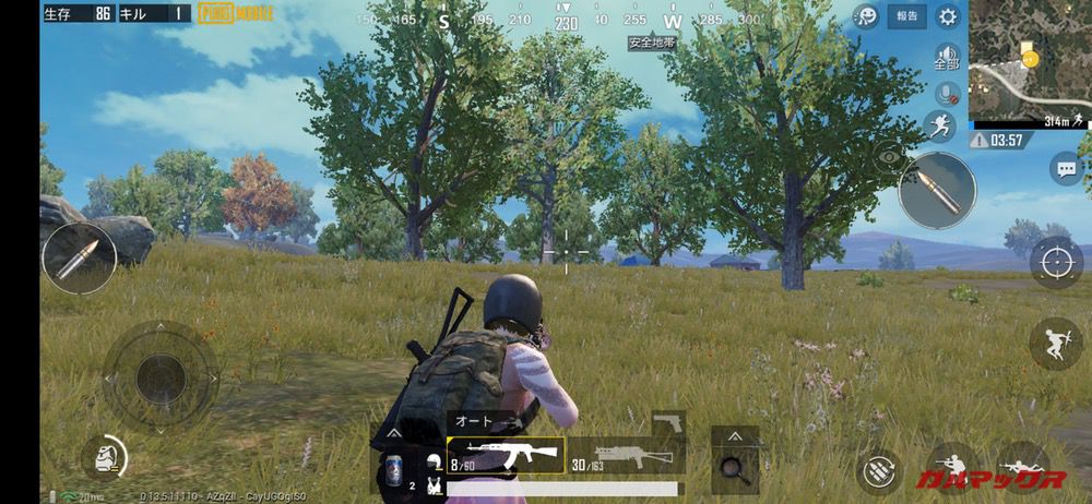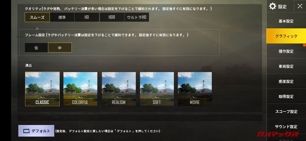 ▼重量級のPUBG モバイルはスムーズ+中が標準設定。遊べるけれど滑らかではありません。↓