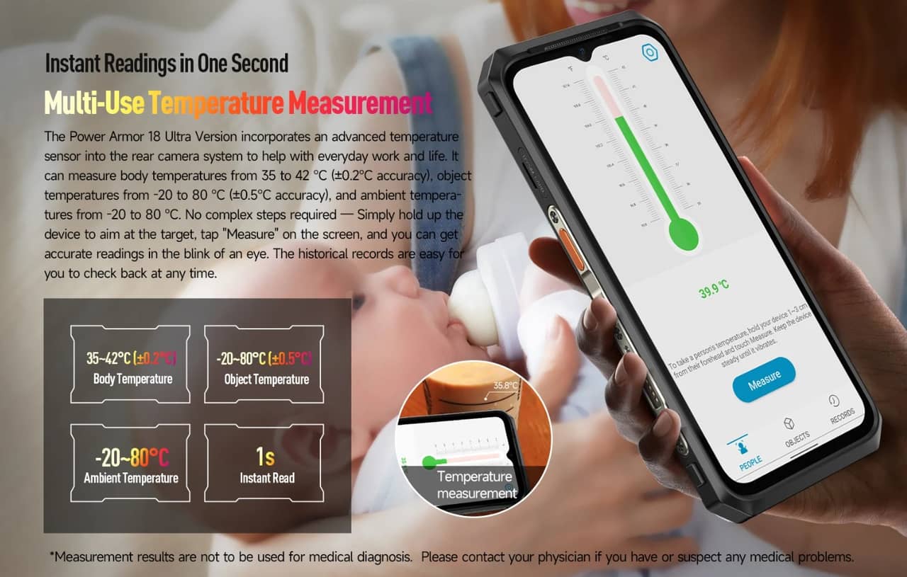 ▼その他特殊機能として温度センサーを搭載!Google Pixel 8 Proでも搭載されているアレと同じで、センサーで検知した物体の温度を表示してくれます。↓