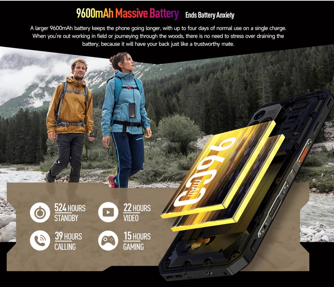 ▼バッテリー容量は特大な9,600mAhとなっており普通のスマホの2倍の大きさ!通話は連続39時間、動画再生22時間もぶっ通しで行えるなど電池持ちも尋常じゃないほどGood。キャンプなど長時間外出していても安心ですね。↓