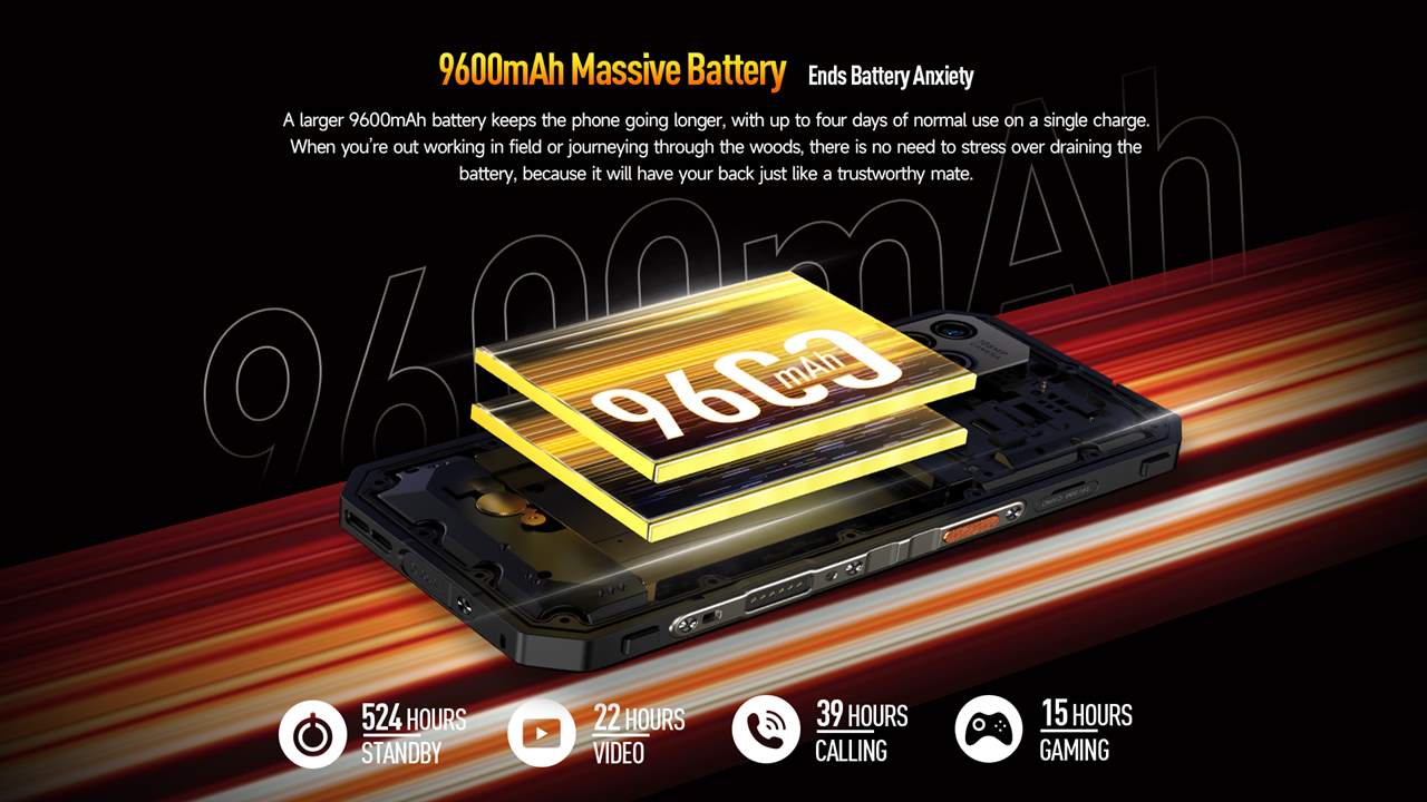▼バッテリー容量は9,600mAhと普通のスマホの2倍近くの大容量!電池持ちも非常に強く、連続22時間の動画視聴もできるんだそうす。さらに最大66Wの急速充電+15Wのワイヤレス充電も対応となっており、文句なしのスペックですよこれ。↓