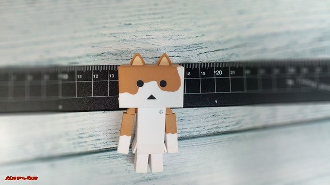 ▼こうやって撮影すると良く分かります。不自然に背景の定規部分までピントが合っています。エフェクトはピント位置(ピントを合わせた箇所)で円形状にピントが合い、周囲のボケ味強度を手動で変更するタイプ。↓