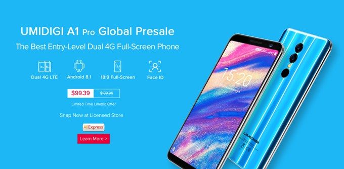 UMIDIGI A1 ProはUMIDIGIの公式サイト経由で通常139.99ドルが99.93ドルで購入可能となってます。販売を担当するネットショップはAliExpressなので安心して購入出来ます!