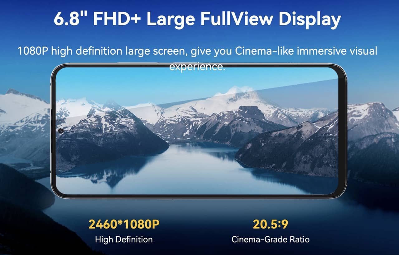 画面サイズは6.8インチと大きく、さらにインカメラを丸く埋め込んだパンチホール設計を採用したことで画面占有率がアップ。