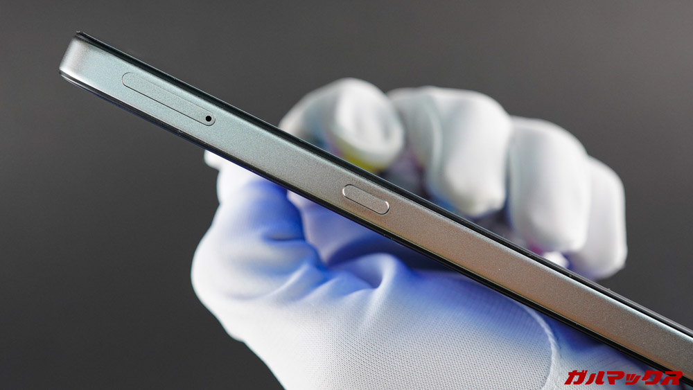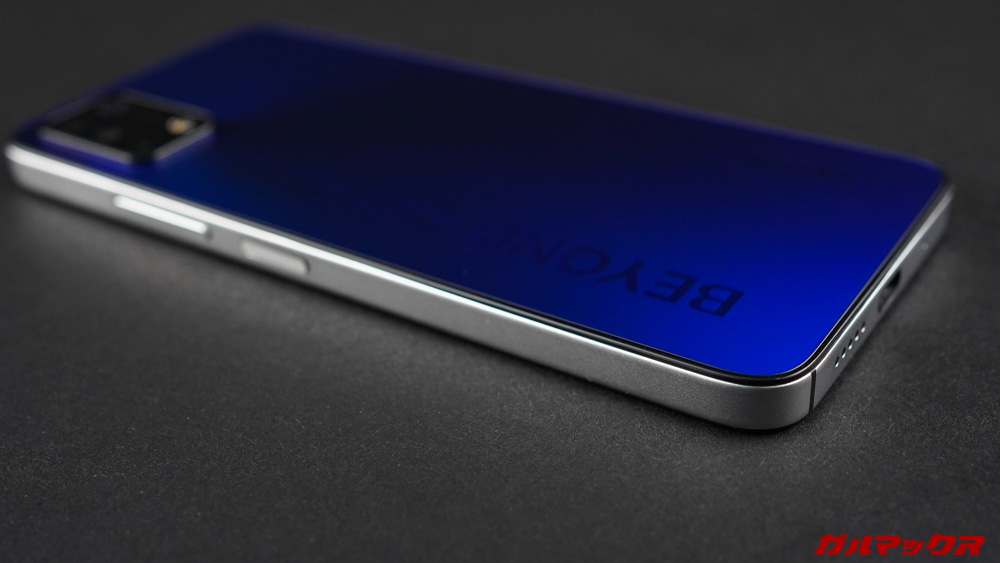 ▼側面材質自体は普通にUMIDIGIスマホらしく安っぽさはあるんですが、形状が形状なので高級感も感じられる。ボタンの配置はオーソドックス+独自キー搭載なタイプっす!↓