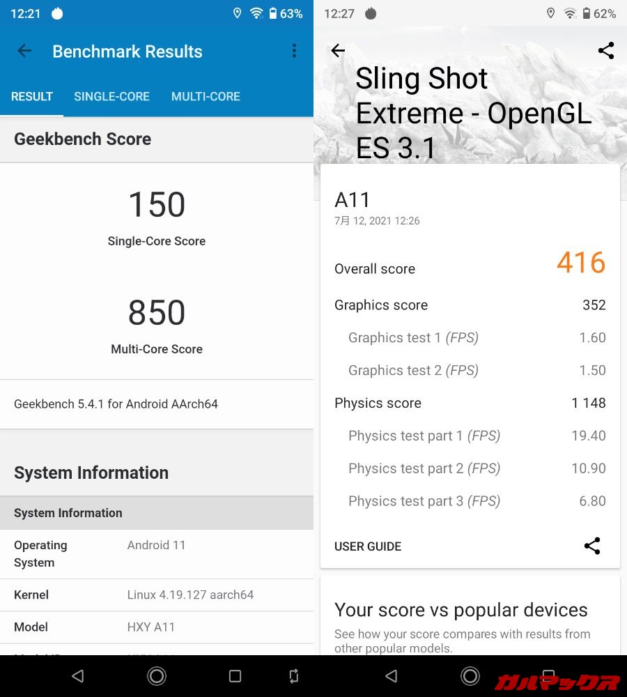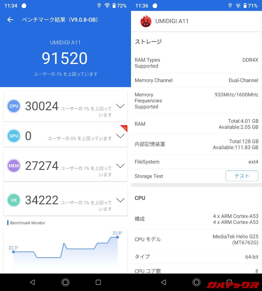 UMIDIGI A11の処理性能・実機ベンチマークスコア