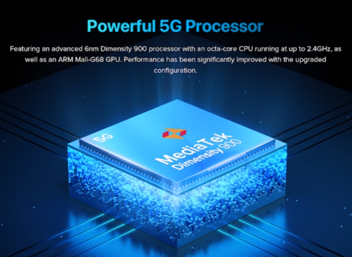 ▼SoCはMediaTek Dimensity 900を採用!ミドルハイレベルの処理性能を持つSoCです。さらにメモリ(RAM)は12GB、保存容量(ROM)は256GBとかなりの大容量で使い勝手も良さげ!MicroSDカードが使えるのもGood!↓