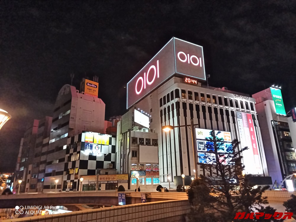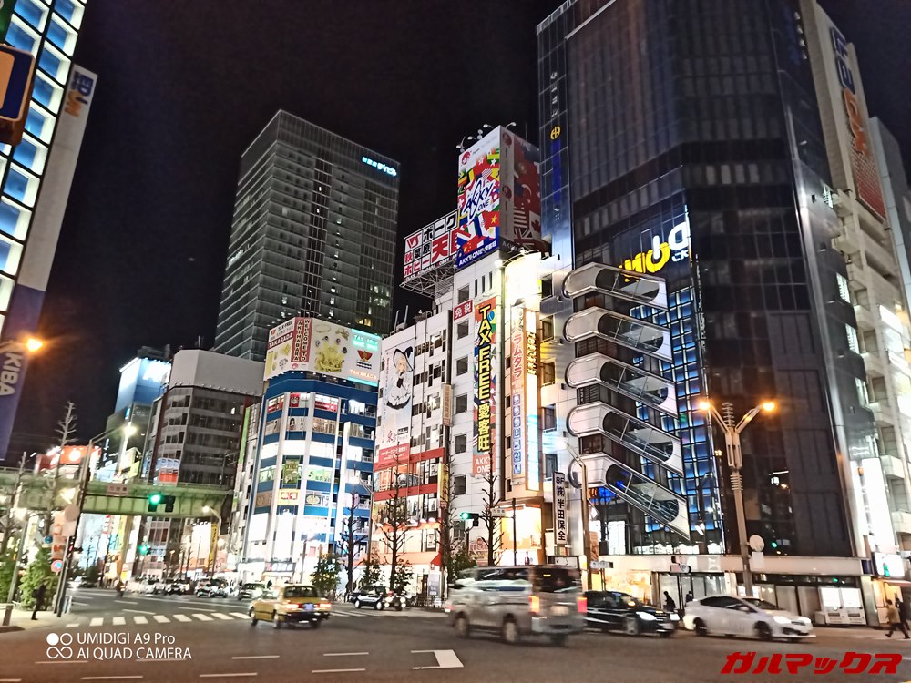 ▼まず手持ちでの撮影。3~5秒ほど撮影に時間がかかりました。明るく撮れてはいるけど…頑張りすぎたのか空がノイジーんなってしまって、ネオン、照明は白飛びしてしまってるのが気になるなぁ(´・ω・`)。↓