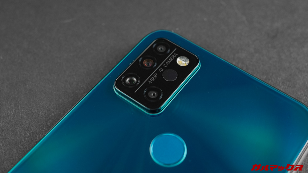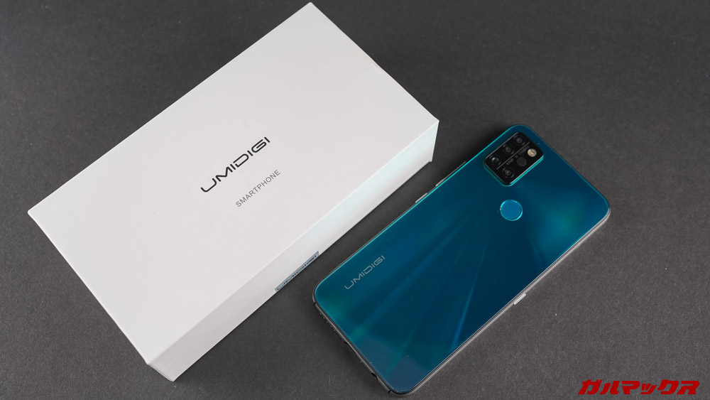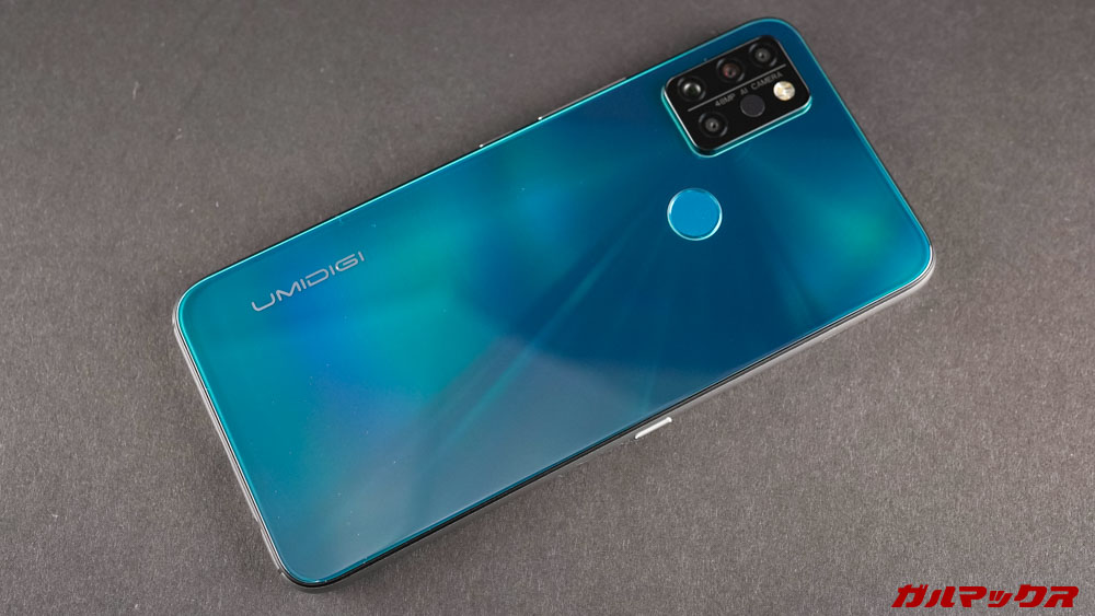 今回のUMIDIGI A9 Proの外観。前にレビューした「UMIDIGI A5 Pro」の系譜を受け継いでいるって印象す。背面も側面の質感もほぼ似てる!
