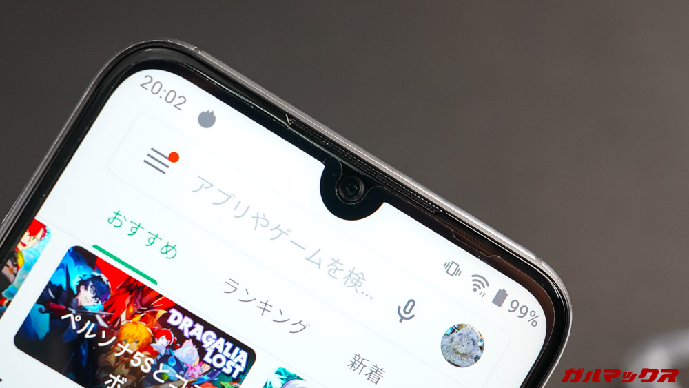 見た感じでは前にレビューしたUMIDIGI BISONのノッチと、サイズ感も見た目もソックリ。あちらはタフネスモデルなので気にはなりませんでしたが、ノーマルタイプのこのUMIDIGI A9 Proではノッチのデカさに違和感を覚える。慣れ次第かな。