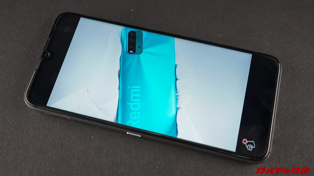 端末のディスプレイは6.3インチの大型サイズ。片手に余るぐらいにデカいため、表示も大きく見やすいのが魅力的。動画視聴でも程よいサイズ感な印象を受けます。