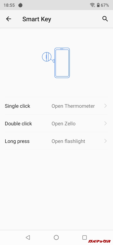 それと、画面上の測定ボタンを押すだけでなく、独自キー、音量キーを押しても測定することができます。なので自分のオデコに当てるときみたいに画面が見えないような状況でも測定できるのは便利でポイント高い!