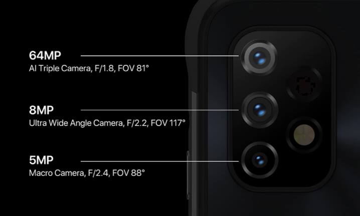 ▼トリプルカメラはメインカメラが6,400万画素と高く、絞り値もf/1.8と期待できるスペック!サブカメラは800万画素の超広角と500万画素のマクロカメラとなっており、広角撮影、近距離の接写と様々な撮影シーンに対応できる組み合わせです。マクロは個人的に結構近づけそうで期待してる!↓
