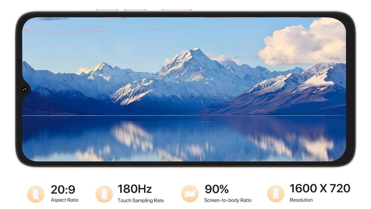 | ディスプレイ | サイズ:6.52インチ 材質:液晶 画面占有率:90% 形状:ノッチ(水滴) 最大リフレッシュレート:非公表 最大タッチサンプリングレート:180Hz |