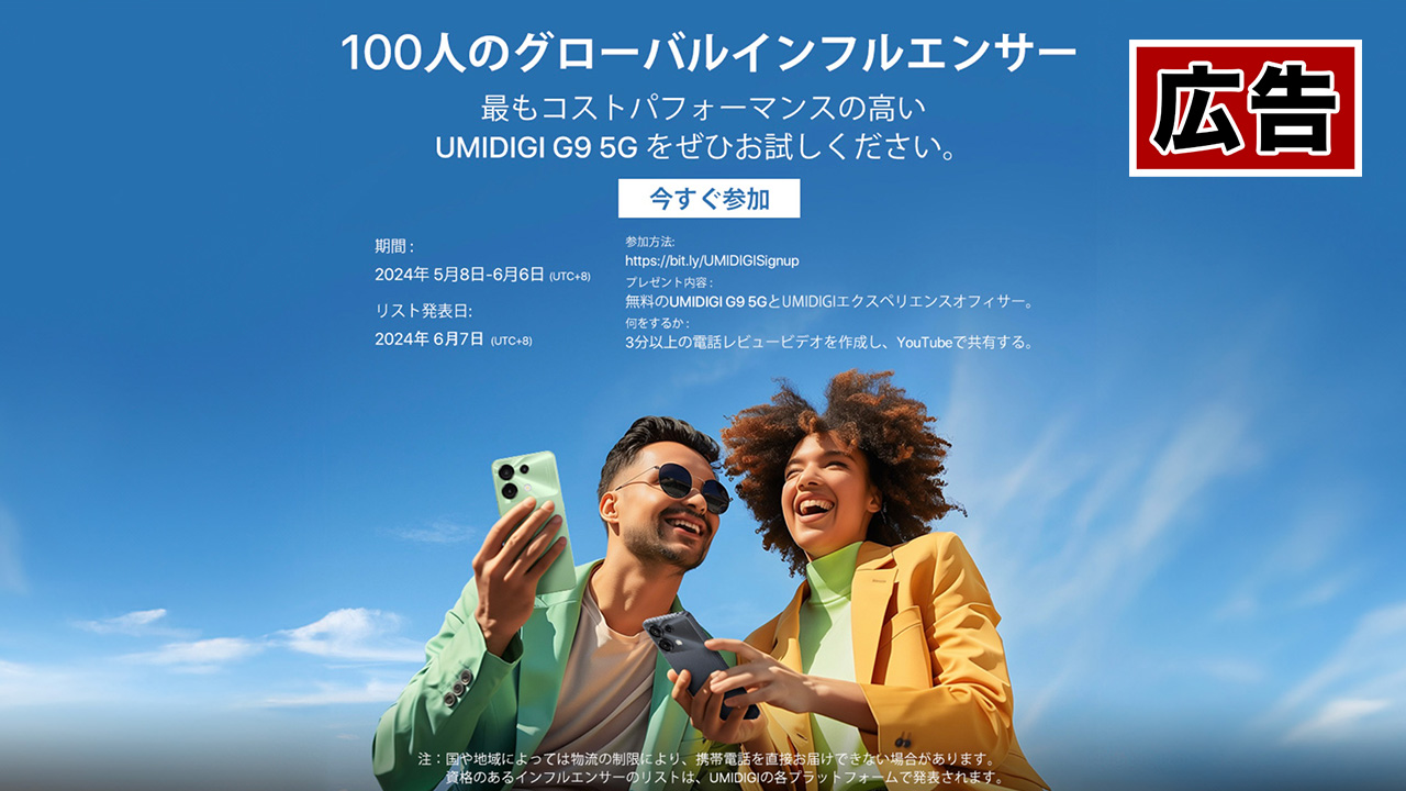 UMIDIGIが新たにリリースする「UMIDIGI G9 5G」のインフルエンサーを募集する「UMIDIGI Welcomes 100 Global Influencers to Explore the Most Cost-Effective UMIDIGI G9 5G」がスタート。人数は100名。