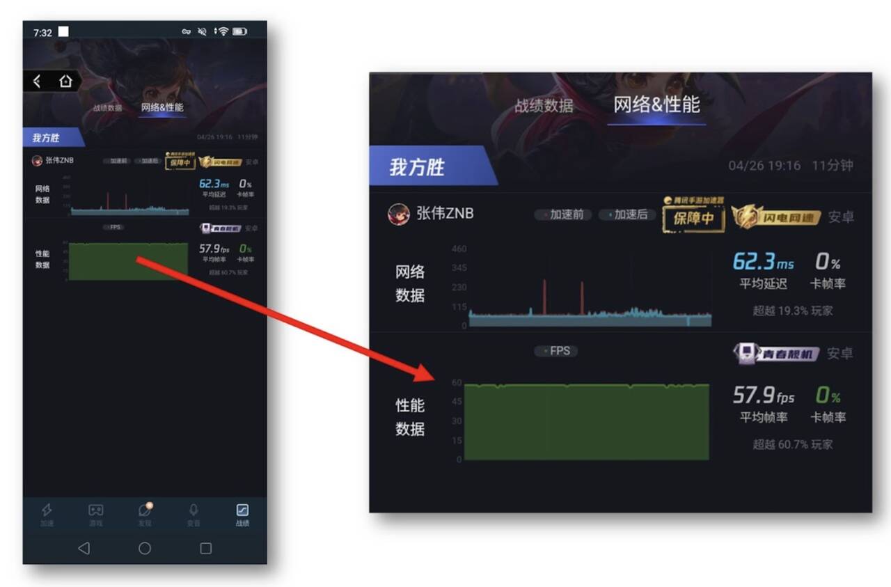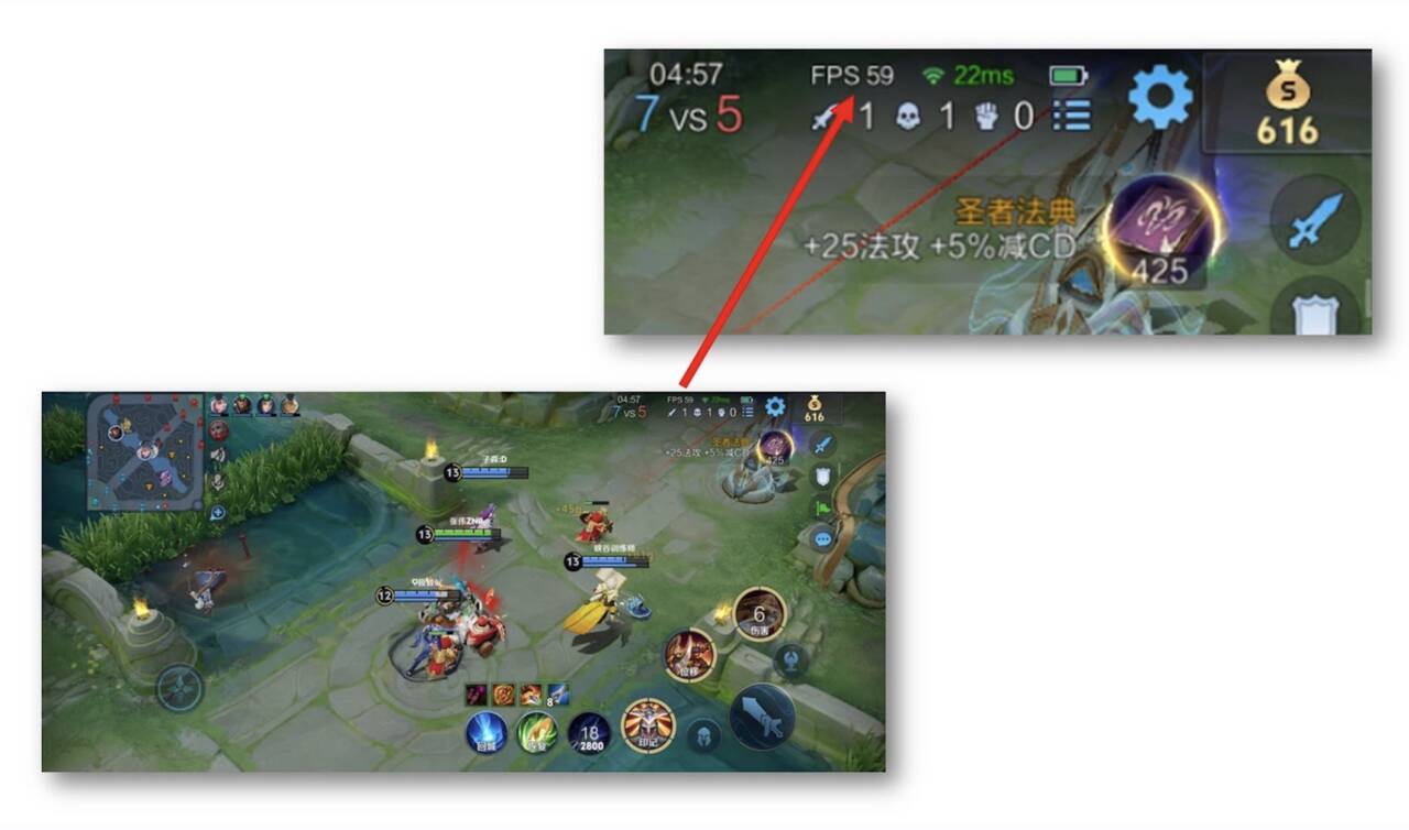 ▼またHonor of Kingsでは平均フレームレート57.9で動作したとのこと!ほぼ60FPS張り付き。↓