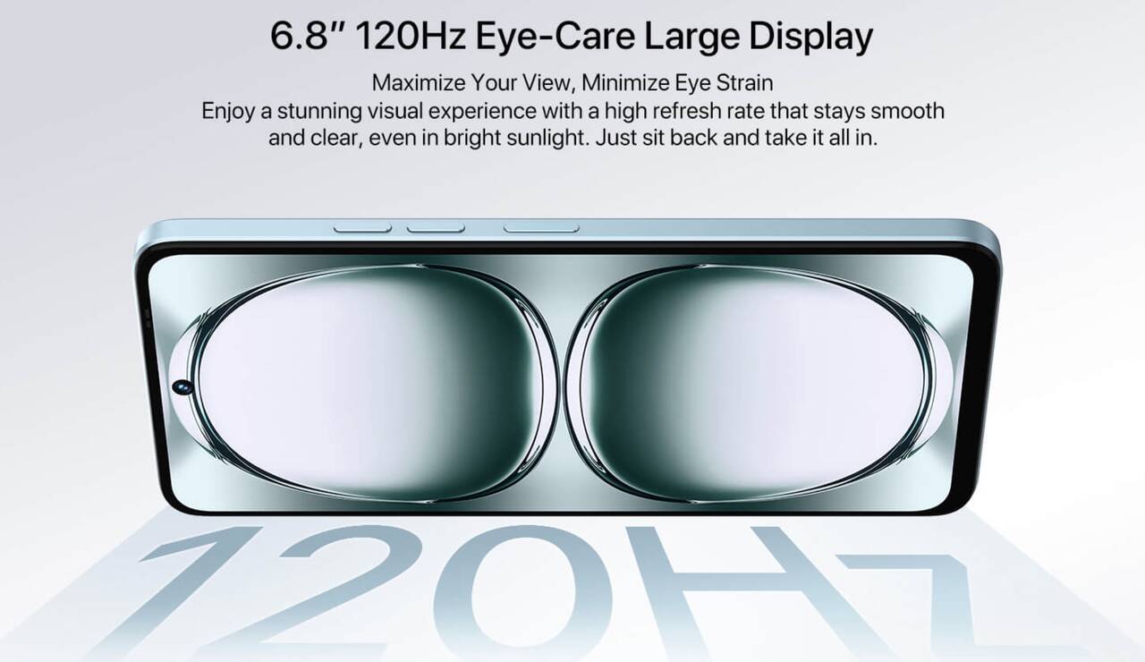 ▼ディスプレイは大型の6.8インチ!解像度は1,600×720のHD+ですがリフレッシュレートはなんと120Hzに対応。↓