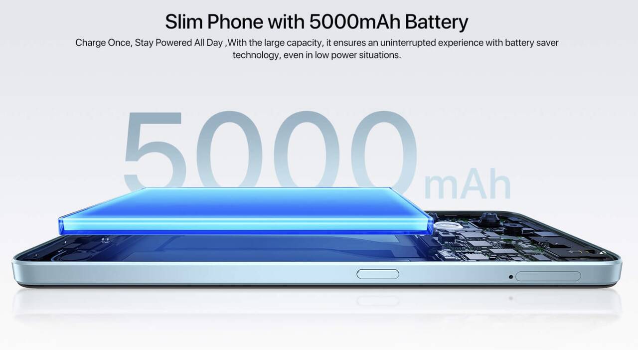 ▼バッテリー容量は標準的な5,000mAhで充電は20W。これまたエントリーらしい構成となってます。↓