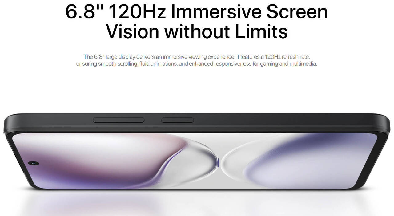 ▼ディスプレイサイズは6.8インチで解像度は1600×720のHD。リフレッシュレートは最大120Hzに対応しており滑らかなスクロールが期待できます。↓
