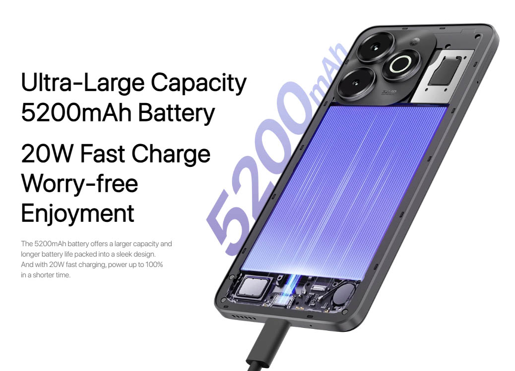 SoCにはUNISOC T8200(T765)を搭載、メモリは4GB(+仮想メモリ8GB)、ストレージは256GB。
