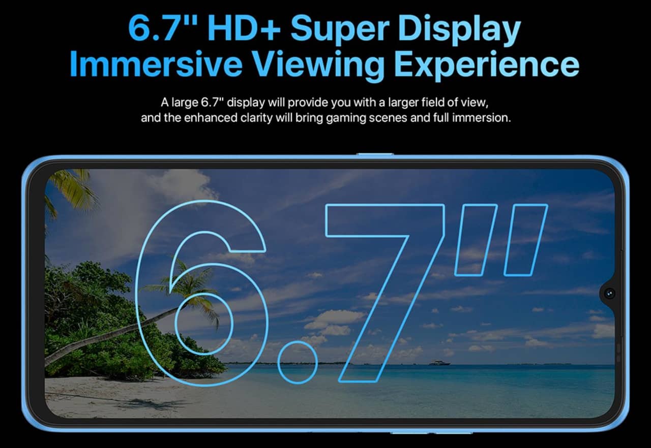 ▼ディスプレイは大画面サイズで6.7インチとなっています!ただし解像度はHD+(1,650×720)と低めなのでドットの粗さは感じるかもしれません。安価なモデルなので割り切りは必要でしょう。↓