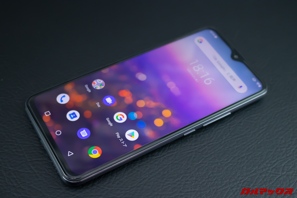 UMIDIGI S3 Proのディスプレイはノッチ(切りかけ)のあるディスプレイを搭載。画面サイズは6.3型ですが縦長ディスプレイなので従来の5.5インチよりも横幅はスリムです。また、画面解像度もFHD+を採用しているので画面の粗さが気にならない画素密度となってます。