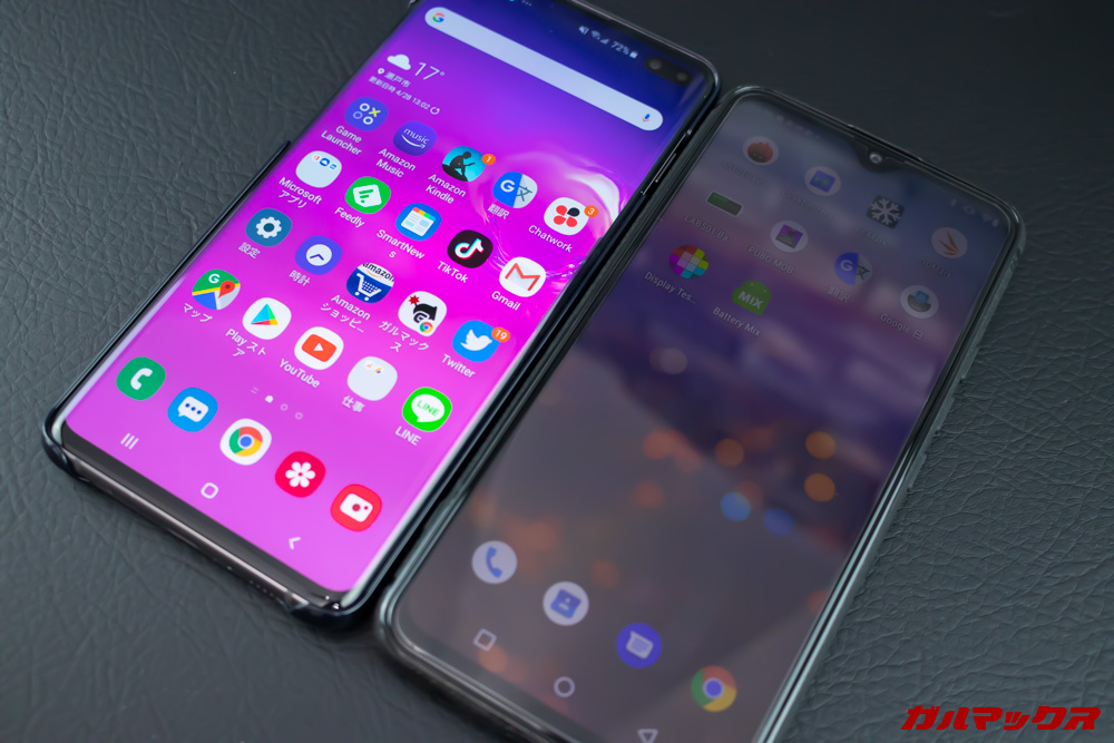 ▼左がGalaxy S10+での輝度50%、右がUMIDIGI S3 Proの輝度50%。極端にUMIDIGI S3 Proのディスプレイは暗い。↓