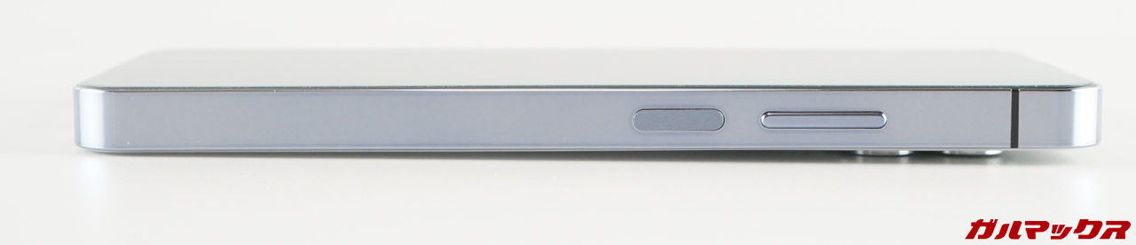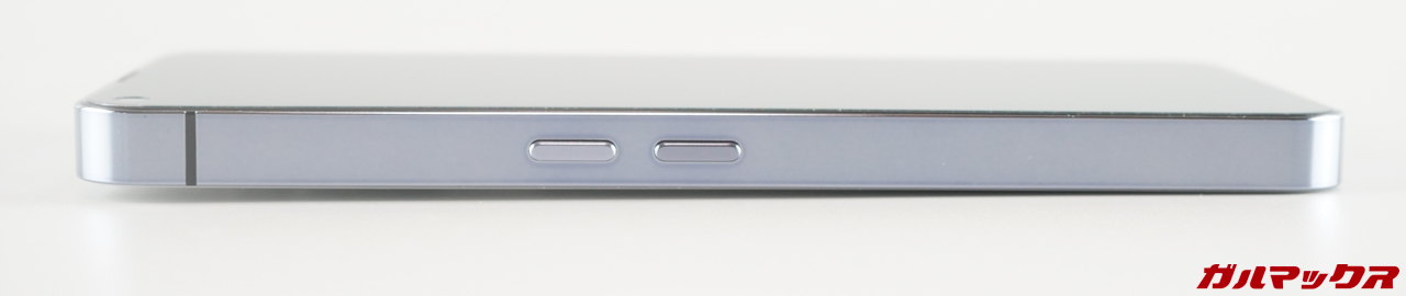 ▼右側面は音量ボタンと電源ボタン。電源ボタンは指紋センサーとしても使う。↓