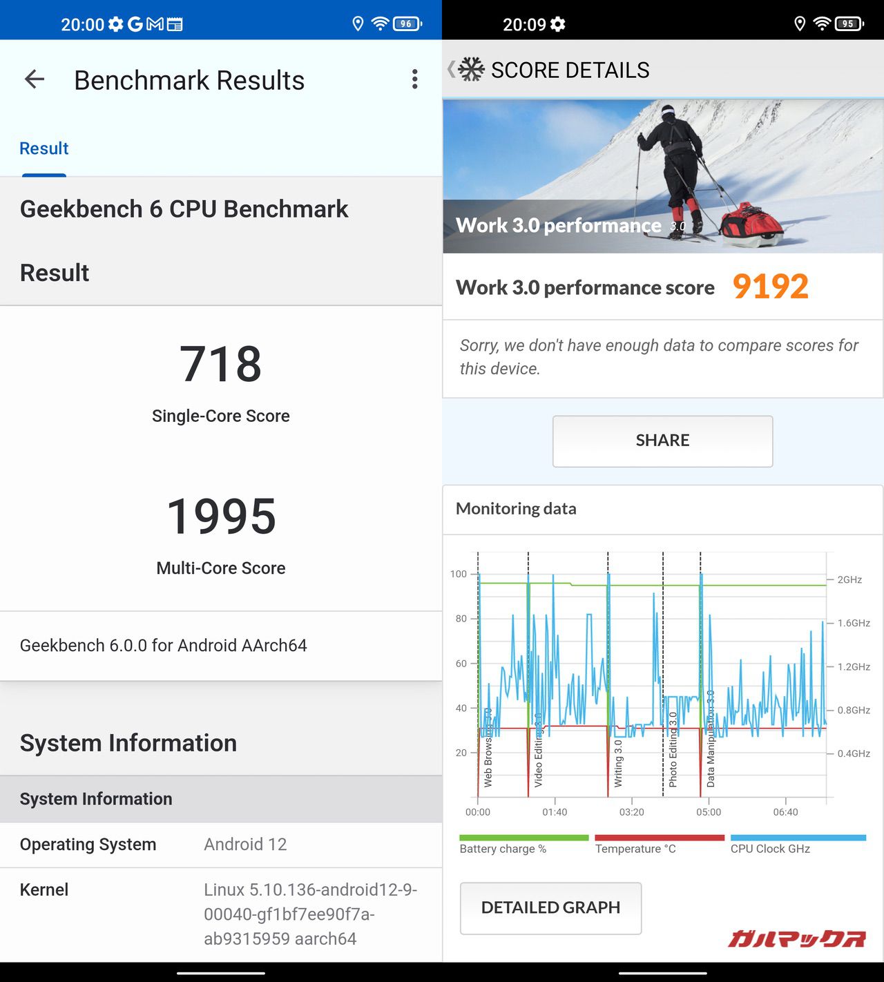 ▼Geekbench 5、PCMark for Android、3DMarkのスコアは以下の通り!↓