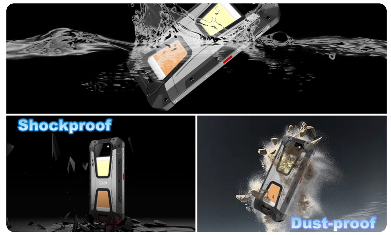 ▼Unihertz Tank 2は防水・防塵・耐衝撃のタフネスボディを採用。ちなみに保護等級はIP68と最高ランクを実現しています。↓