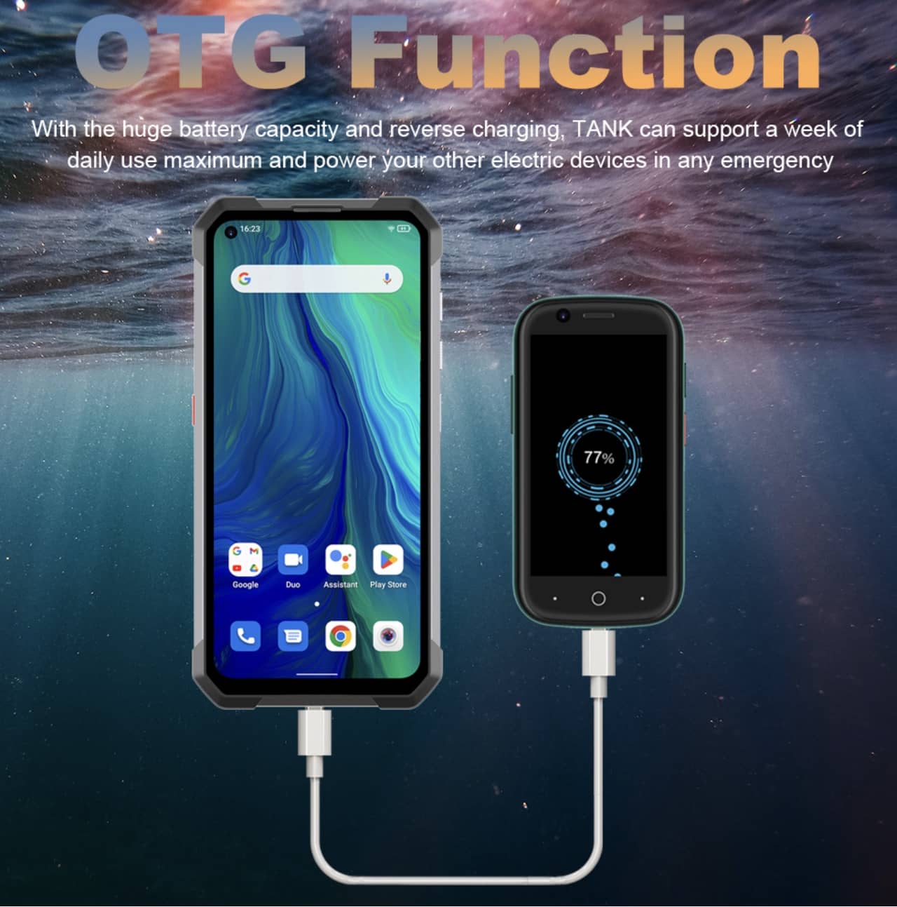 さらに有線による逆充電にも対応。つまり、Unihertz Tankを22,000mAhクラスのモバイルバッテリーとしても使えるってことですね。