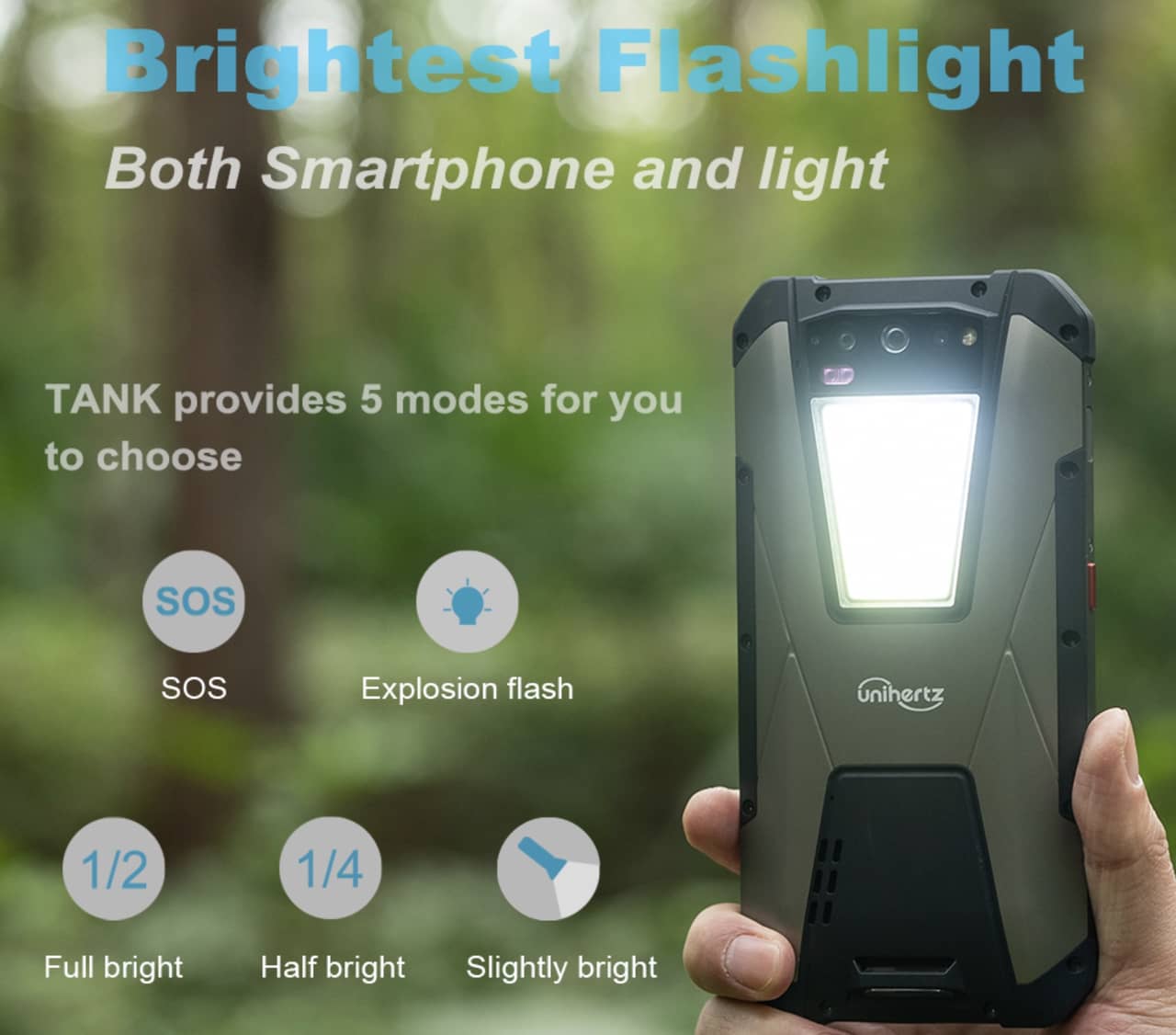 「Unihertz Tank」発表!巨大ライトと2.2万mAhバッテリー搭載のタフネススマホ!