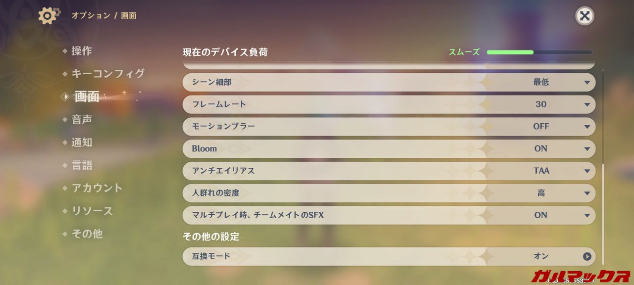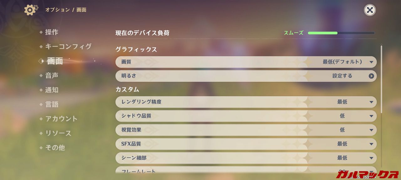 ゲーム性能は低い部類なので原神のようなグラフィックの綺麗なゲームは厳しいです。また、画質を下げてプレイする場合も30FPSを下回ることがあるあります。