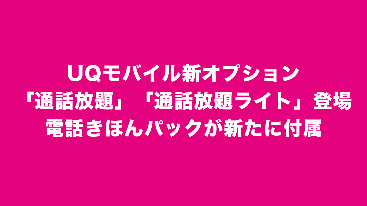 UQモバイル、「通話放題」「通話放題ライト」発表。電話きほんパックが新たに付属