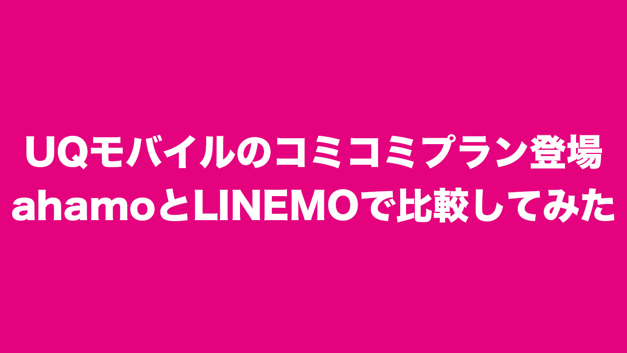 [結構良い]UQモバイルのコミコミプランとライバルになりそうなahamoとLINEMOで比較してみた