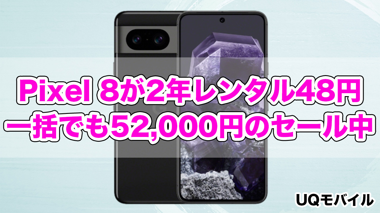 Pixel 8がUQmobileにMNPで2年レンタル47円!一括で買っても52,000円のセール中