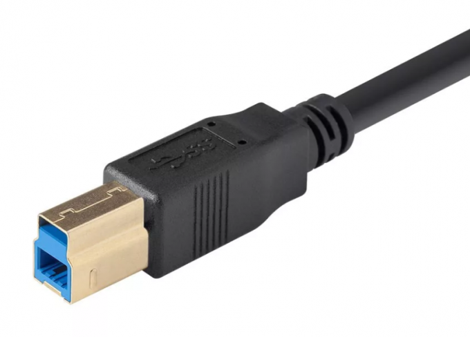 先程、USB 3.0 Aは転送速度が5Gbpsあるので、高速な外付けストレージ機器に付属していると書きましたが、USB 3.0 Bは周辺機器側に利用される端子です。