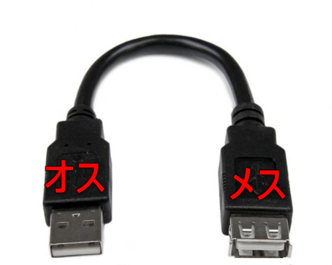 USBケーブルを延長したいときには、USB AならUSB Aのメス⇔オスのケーブルを用意することで延長出来るので覚えておきましょう。