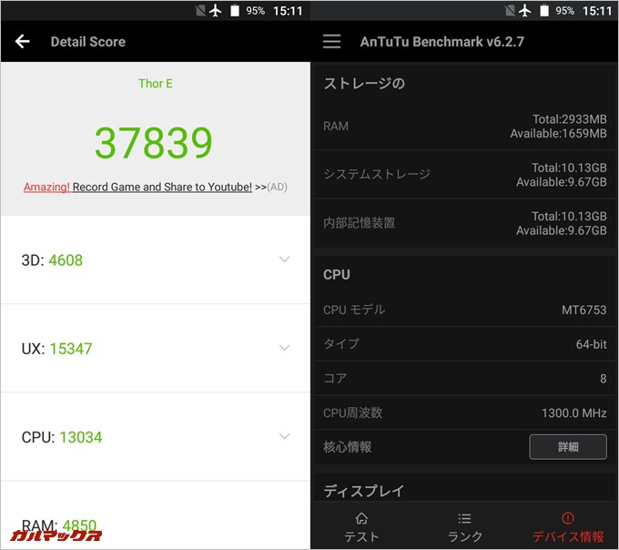 ▼以下はAnTuTuベンチマークアプリで測定したVernee Thor E実機スコア。↓