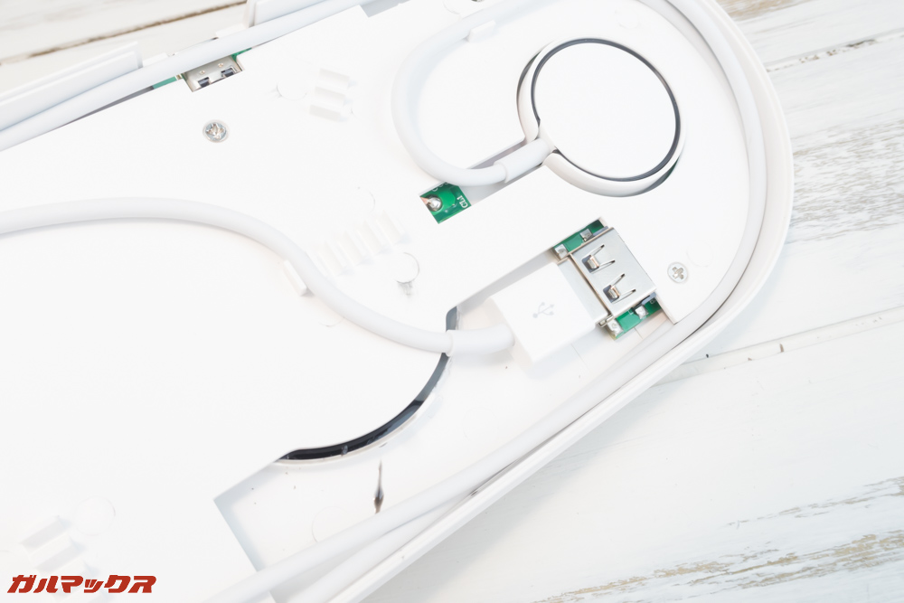 ▼内部にもUSBポートが備わっているので、マグネット充電ケーブルの先端を差し込みます。↓