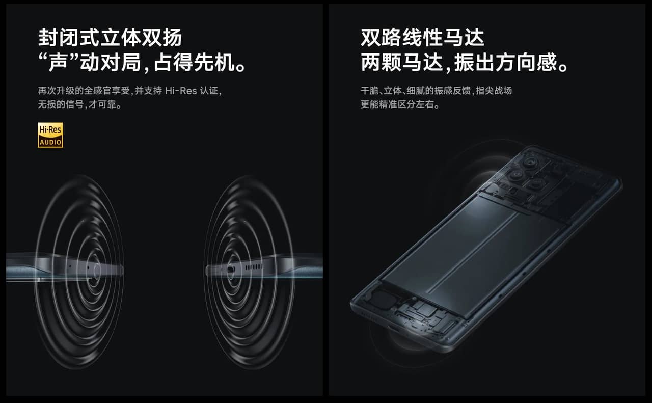 ▼スピーカーはハイレゾ対応デュアルスピーカーなのでサウンドの迫力も感じられそうですね!さらにリニアモーターを2箇所に配置。おそらくX軸とZ軸のリニアモーターだと思うので振動フィードバックの質感が高くなっていそう。↓