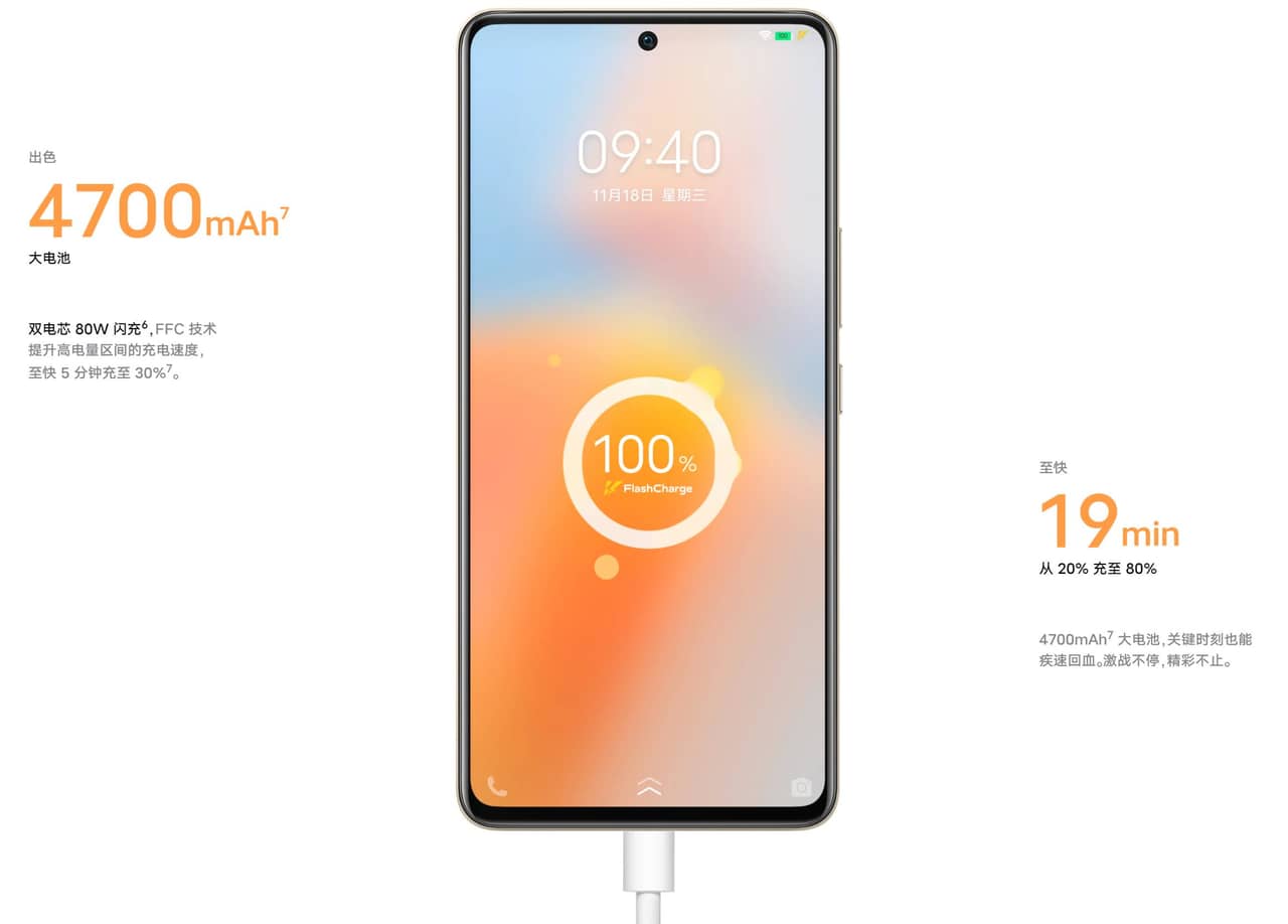 ▼バッテリー容量は4,700mAhと十分な大きさに加え、最大80Wの超急速充電にも対応!たったの19分でバッテリー20%から80%まで充電できるそうです。ただ充電器は同梱されているんですが、それが80Wかどうかは不明。80Wだといいなぁ。↓