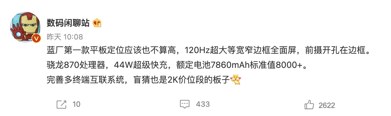 Vivo製タブレット「Vivo Pad」の一部スペックがリーク!Snapdragon 870搭載か