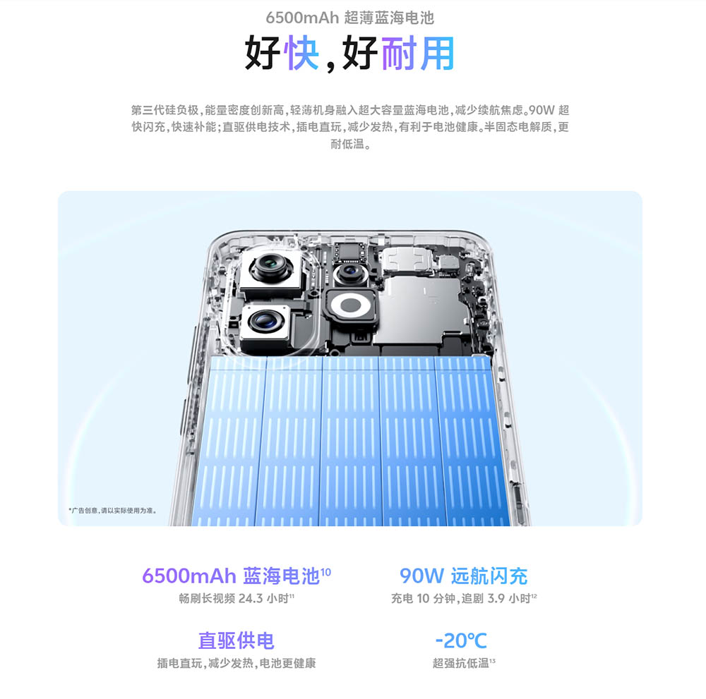 • 6500mAh+90W充電対応