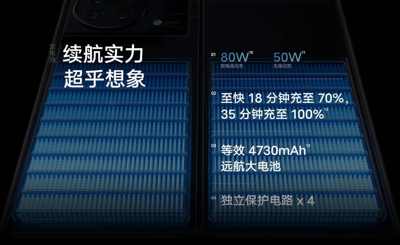 - 4,730mAhのバッテリー容量。最大80W充電に対応