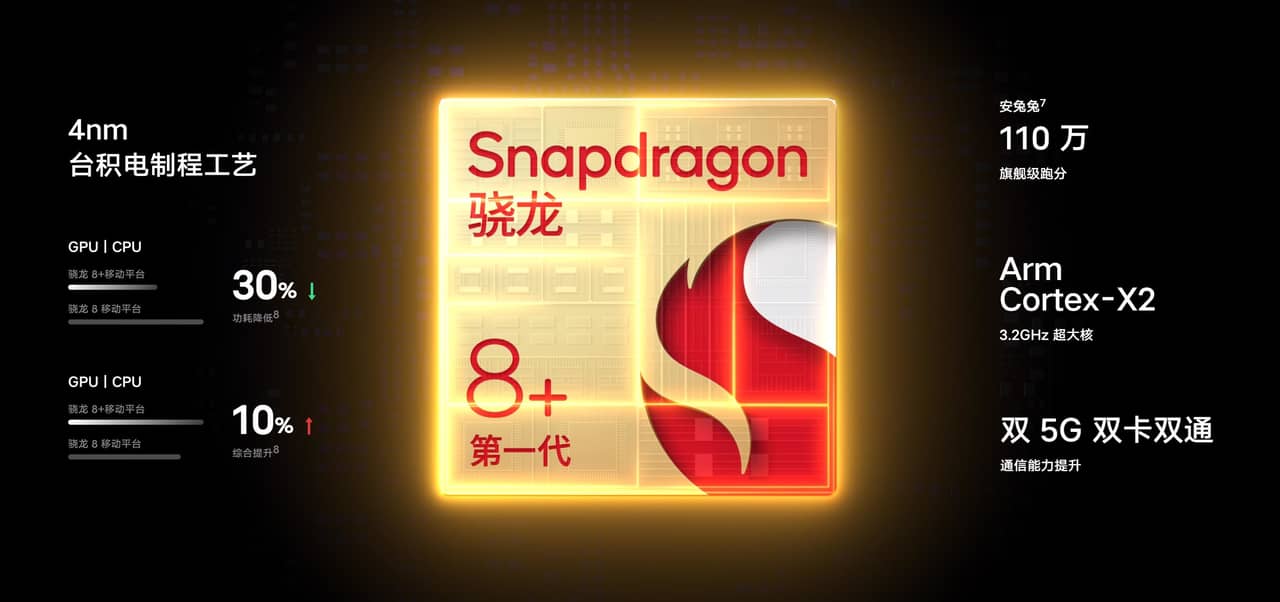 ▼SoCはグレードアップしておりSnapdragon 8+ Gen 1を採用!8 gen 1は発熱がネックである一方でこっちは安定性が高いと割と良い評判も聞くので期待したいところだッ!↓