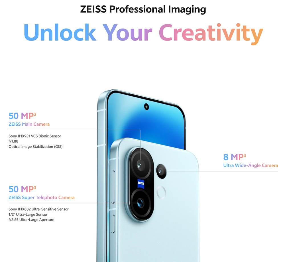 メインカメラにはIMX921、望遠カメラにはIMX882を採用しており、これはvivo X200と同じであるため、ハイクオリティな写真撮影を楽しめるでしょう。