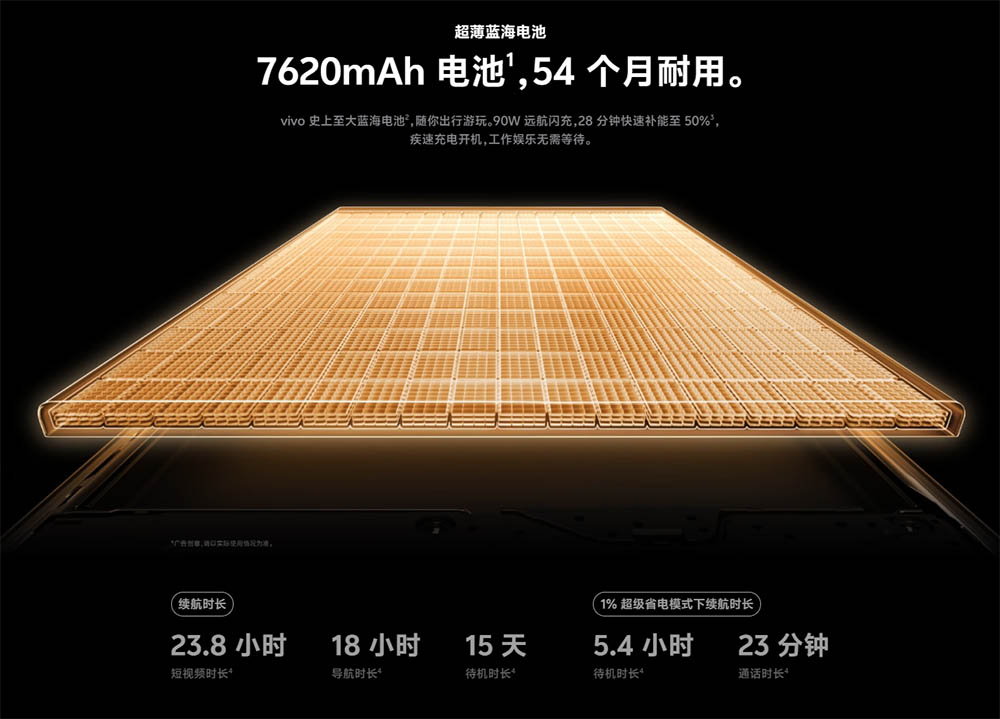 ▼バッテリー容量は7620mAh。23.8時間の連続ショート動画再生に耐えうるバッテリーで、バッテリー容量が1%から23分の通話ができるそう。また、バッテリー寿命は4.5年と耐久性も十分です。↓