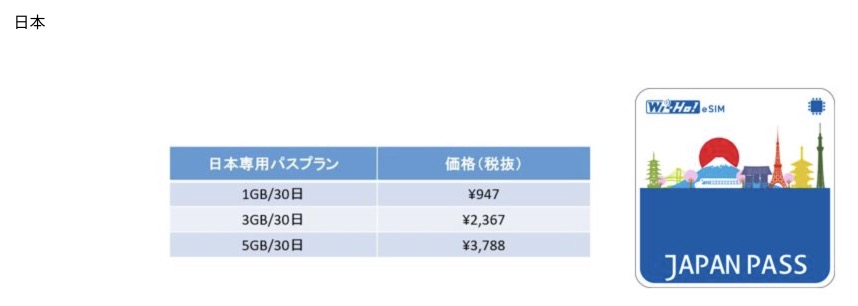 ▼最後は日本向けのパス。こちらは1GB/30日/947円〜となってます。↓