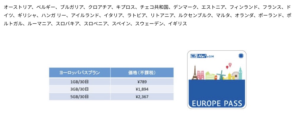 ▼まずは28ヵ国で利用可能のヨーロッパパス。こちらは28ヶ国が含まれていてお値段は1GB/30日/789円〜とリーズナブル。ヨーロッパパスは周遊旅行時に切り替えの必要が無いので便利そう。↓