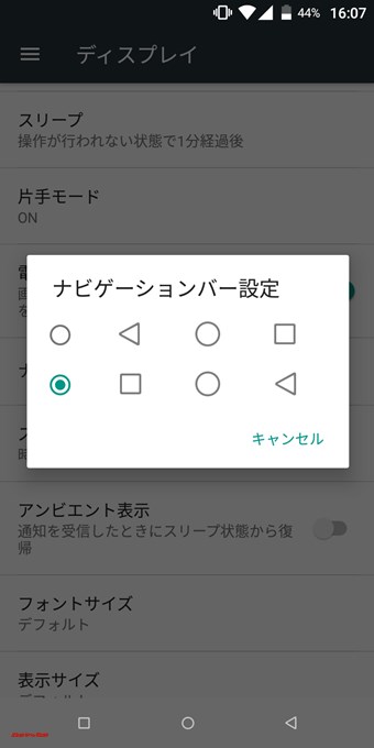 ▼ナビゲーションキーキーは戻るボタンの位置を左右から選べます。これ、地味に便利なんですよね。右手使いの僕は右側に戻るボタンが無いと指が届かなくて大変なので重宝してます。↓